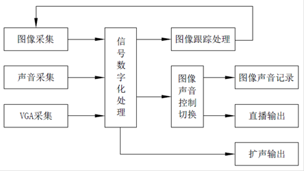 其中录播系统通常由教室场景图像采集、声音采集、VGA采集、图像自动跟踪、图像控制切换、信号数字化处理、记录、直播、扩声等单元组成一套完整的录播系统。其过程是通过图像、声音、电脑VGA信号的采集,把捕捉到的信号进行数字化处理,然后进行记录、网络实时直播、B/S架构点播和现场扩声。